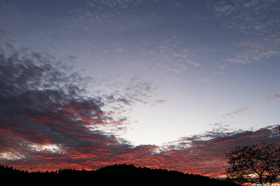 目が覚めるような今朝の寝起きの絶景 細い月が輝く真紅の空から茜色に輝く雲と富士山 頂上が赤く染まっていく甲斐駒が美しかった 行楽日和になった今日 でも一歩も家から出ず何処にも行かないって逆に贅沢w