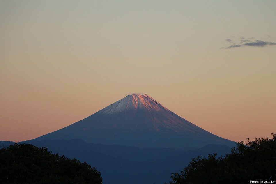 風の強い荒れた天気も美しいスッキリとした赤富士で終わった