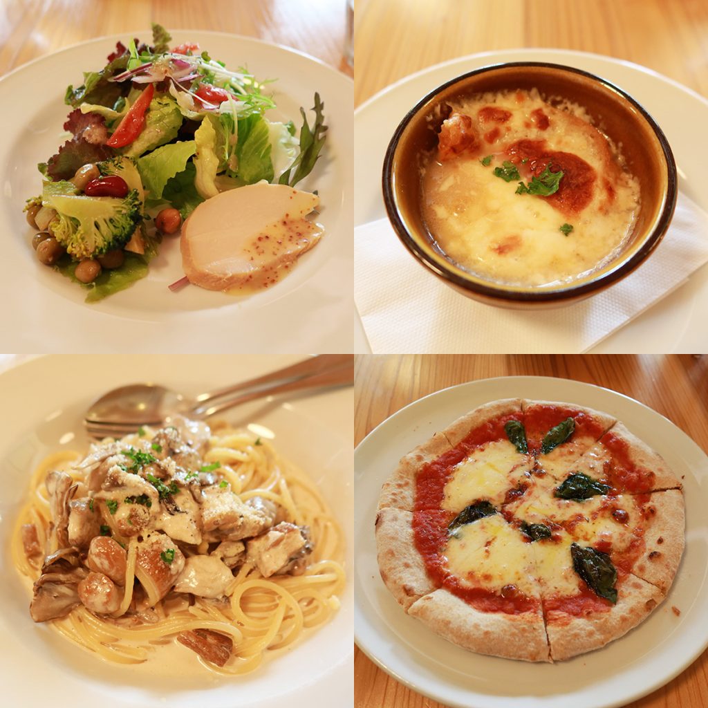 ランチセットも前菜、スープとメインのポルチーニのパスタとマルゲリータとボリュームもあって美味しかった。