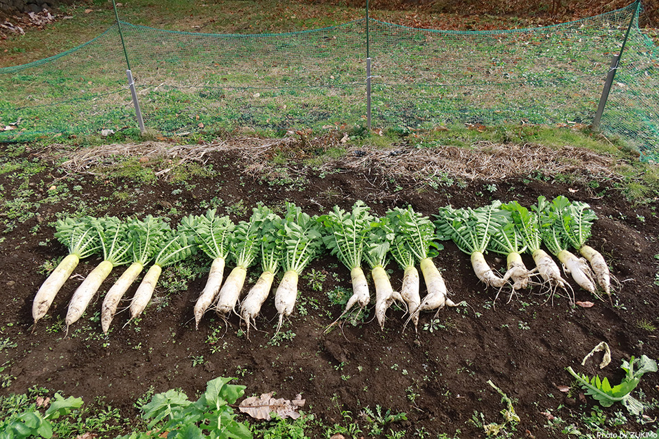 今シーズン一番の冷え込みになった今朝 もう採らないと霜にやられそうなので大根を収穫してきた