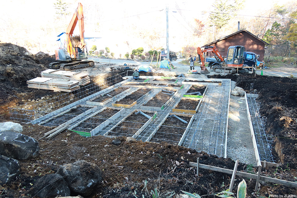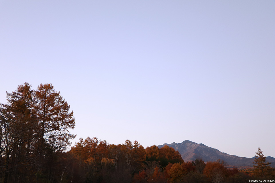 カラマツの黄葉が美しい晩秋色の山の午後 現場の周りの黄葉はもう終わり この時期は日が沈んでも残照の木立が美しい