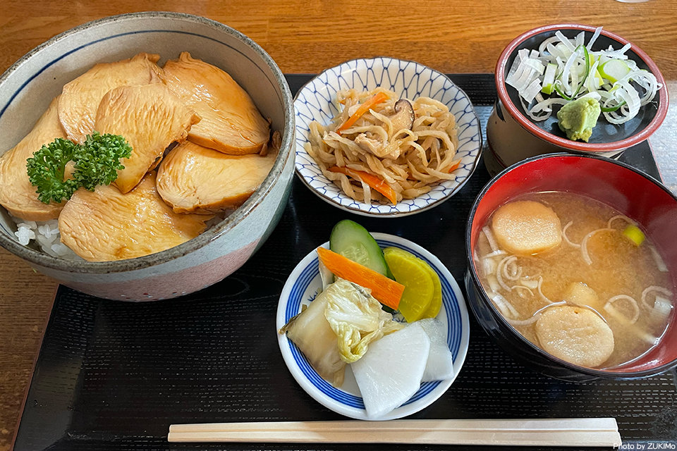 鳥チャーシュー丼も程よく味の染み込んだムネ肉でさっぱりして美味しい。