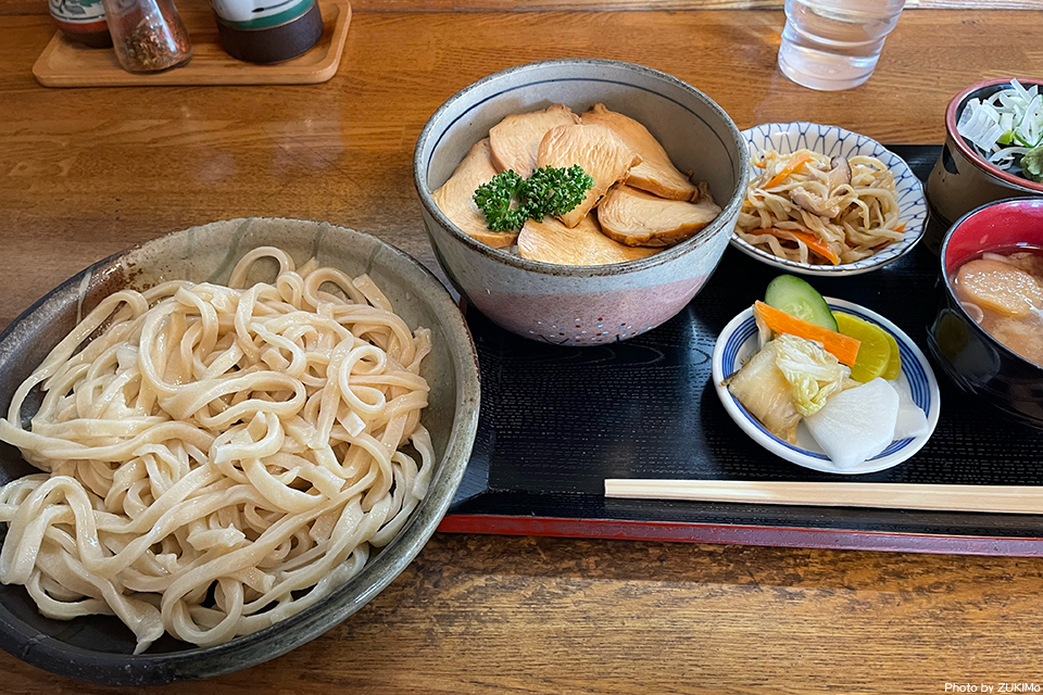 初入店ってことでオーダーに戸惑ったが、み〜さんは店名の「長八うどん」をこちらは「鳥チャーシュー丼セット」をお願いした。