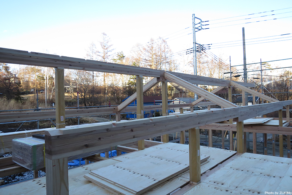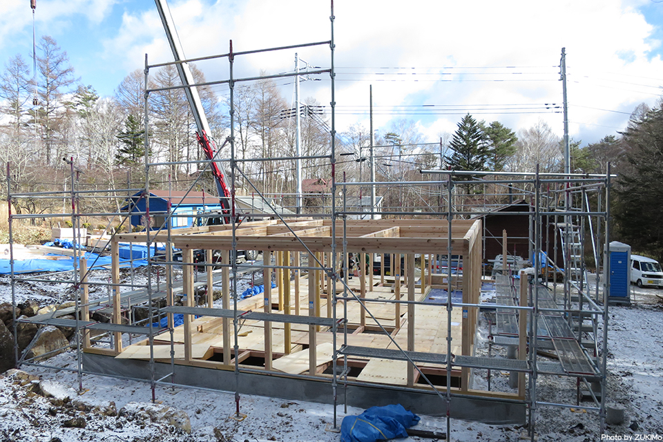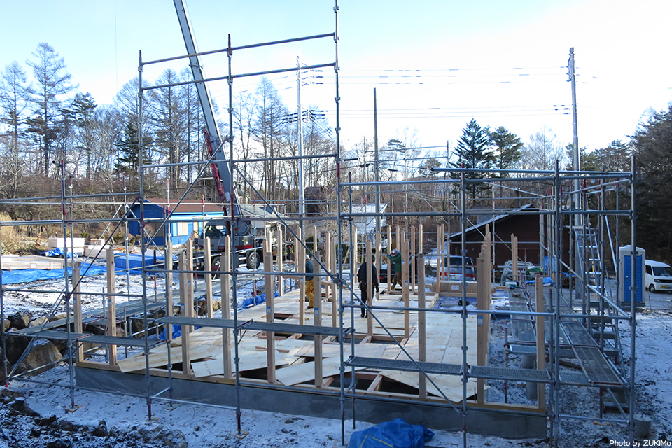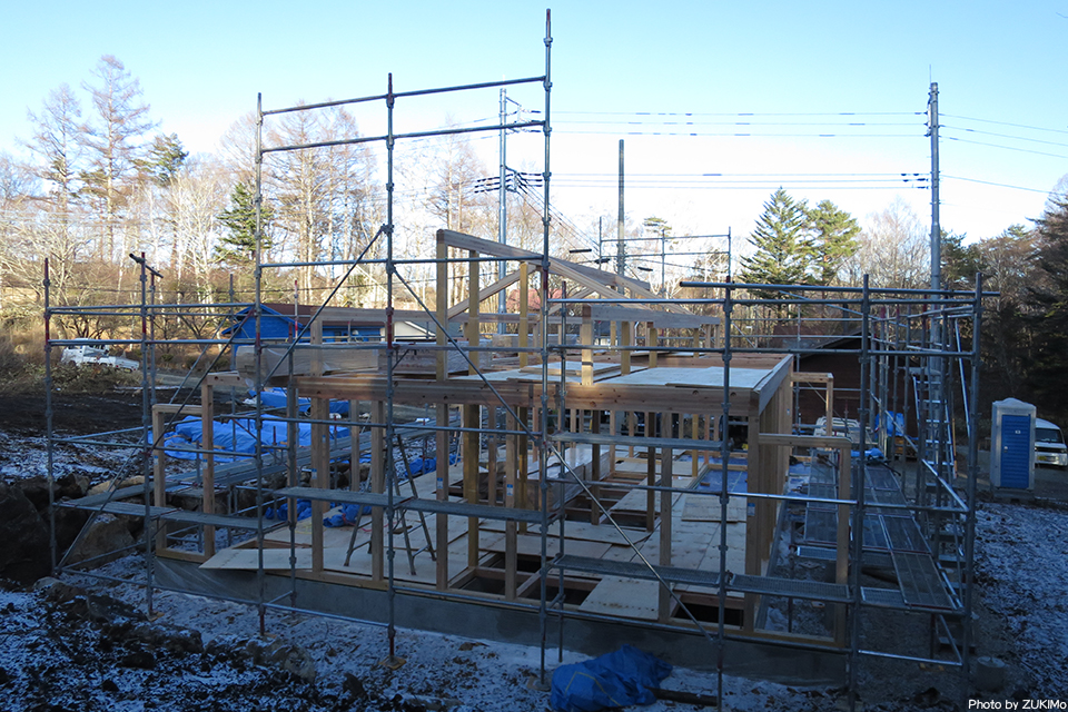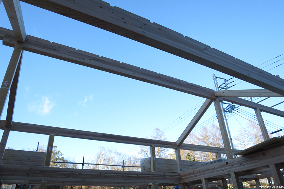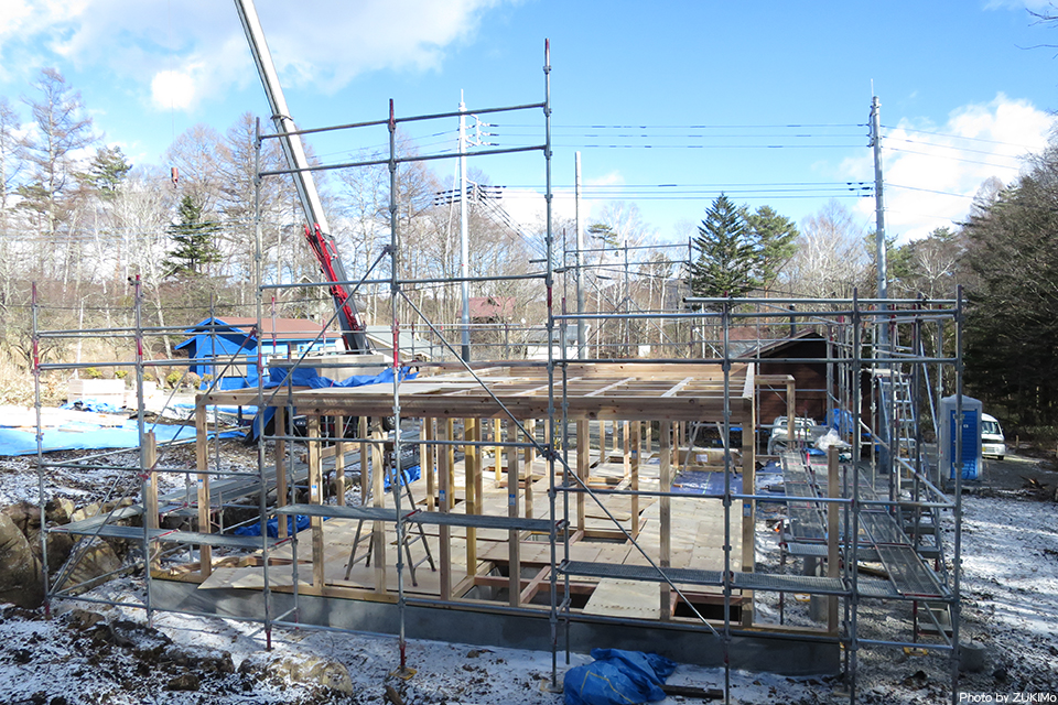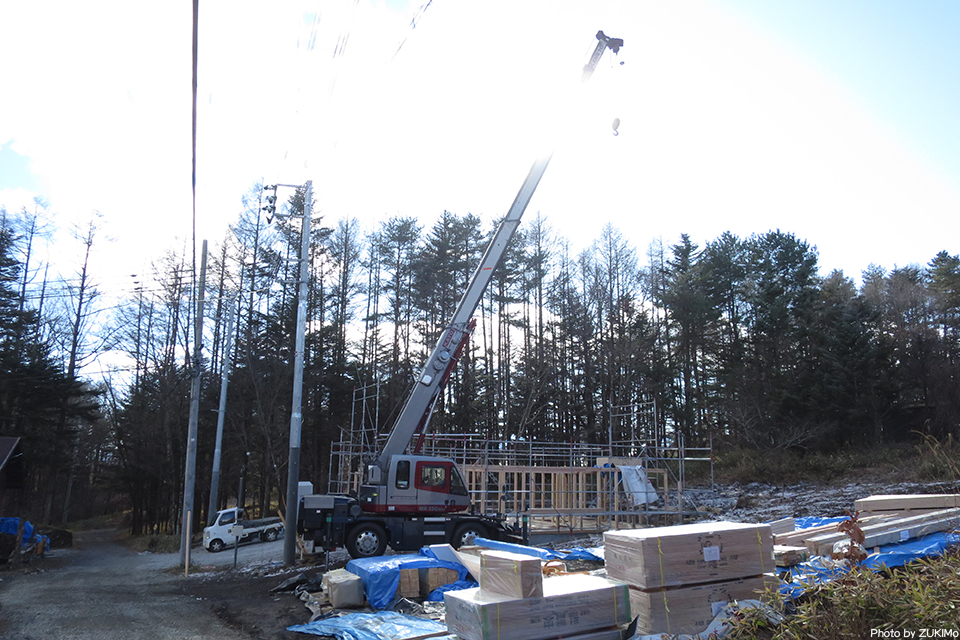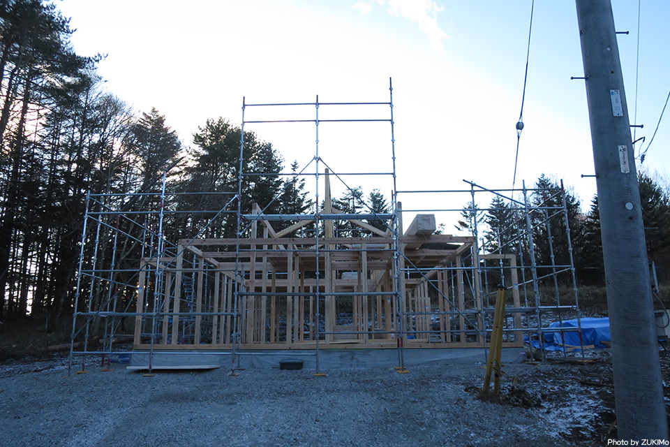 昼までには一階の建て込みが終了し、午後には棟上げも出来て何とか形にはなった