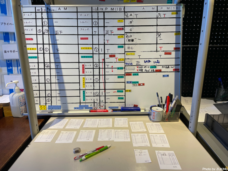 全くもって仕事する気がない中、ろくな説明もないまま契約書にサインし、早速当然のように受付カウンター裏の席に座らされ、スタッフ数の厳しい中薄く広く入ったクラスの配者を任せられる🤨