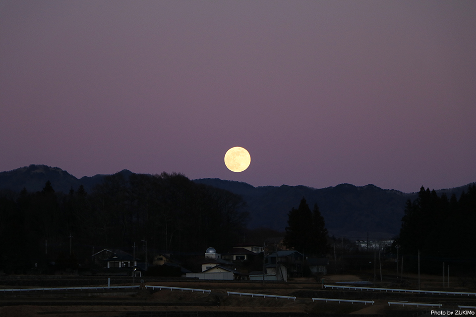 雲ひとつない絶好のコンディションの中、ビーナスベルトをバックにでっかくてまん丸の月が昇ってきた