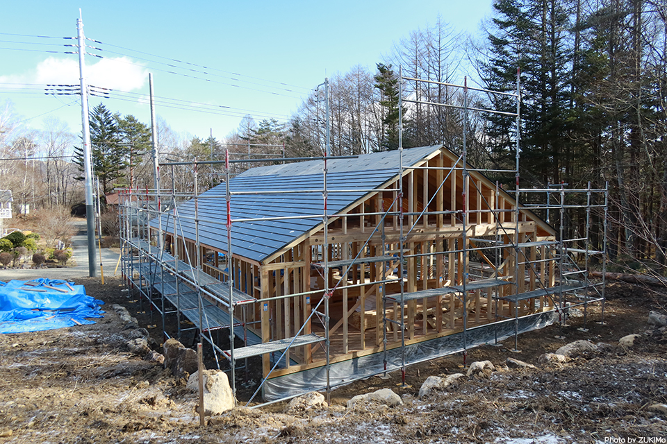 そのついでにかなり骨組みと屋根葺きが進行した現場の様子を見てくる